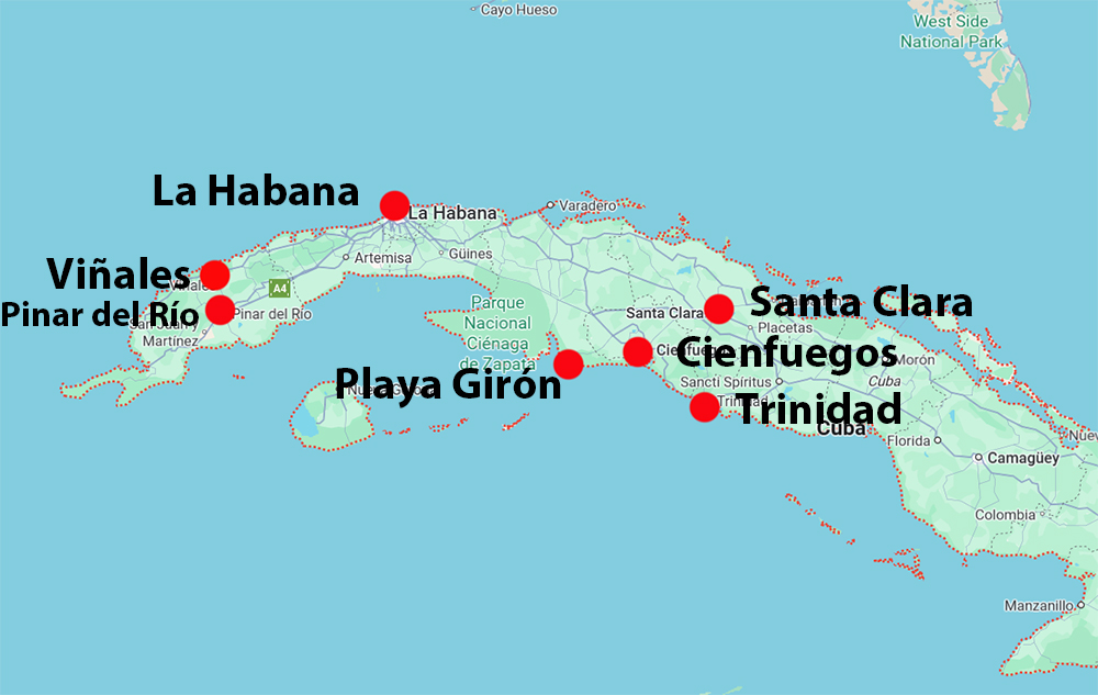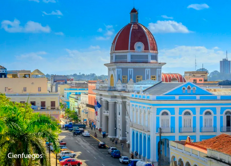 Desayuno y almuerzo. Traslado 3h a Cienfuegos con parada en Playa Girón, donde se dio la invasión contra Fidel. Cienfuegos, otrora refugio de piratas, es la ciudad más próspera de Cuba, con una hermosa bahía y un casco antiguo bien conservado. Tour panorámico, destacan: el Palacio de Valle, con detalles góticos, venecianos y neomudéjares; Punta Gorda, el barrio aristocrático; el Cementerio General, neoclásico; el Cementerio Monumental, un gran jardín con senderos y árboles frutales; el Castillo de Jagua y el Jardín Botánico. Almuerzo en Restaurante El Lagarto o similar. Traslado 1:30h a Trinidad al Hotel Mystique Trinidad La Popa By Royalton 4**** o similar.