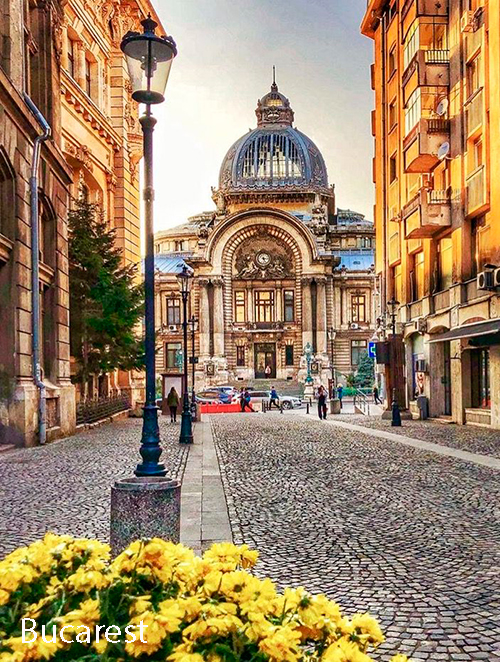 Desayuno. Traslado 4h a Bucarest, la capital rumana, con un formidable legado histórico-artístico, muchas peatonales y zonas verdes. City tour panorámico, destacan: el histórico Pasaje Victoria, la peatonal con techo de cristal Macca–Vilacrosse; el prestigioso Ateneo Rumano, con una de las mejores salas de conciertos del mundo (entrada); el bello Palacio CEC, el fotogénico interior de la librería Carousel; el restaurante Caru’ cu Bere de cocina tradicional, música y bailes en vivo; el Arco del Triunfo y el Parque Herastrau, el más grande de la ciudad con un lago rodeado de vegetación, muchos cafés y restaurantes. Visita al ostentoso Palacio del Parlamento, el 2° edificio administrativo más extenso del mundo, y el Museo de la Villa Satului, una cuidadosa colección etnográfica al aire libre con más de 60 edificios históricos rurales de toda Rumania: granjas agrícolas, iglesias, molinos de viento, cabañas y más. Hilton Garden Inn Old Town 4**** o similar, céntrico.