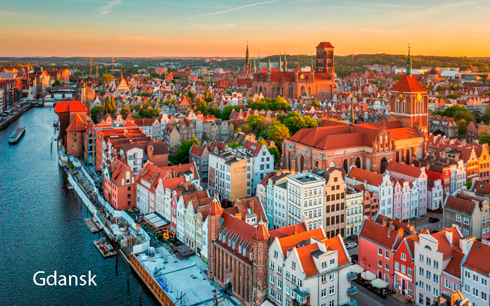 Desayuno. City tour panorámico 4h, destacan la Ruta Real, el corazón de Gdansk, con artísticas fachadas de casas burguesas; la peatonal Długa que atraviesa el centro histórico hasta la Puerta Verde; la histórica plaza el Mercado Largo, un barrio burgués del s. XVII que alberga el ayuntamiento, el Tribunal de Artus y la Casa Speymann. La Basílica de Santa María, un gigantesco templo gótico de ladrillo con una torre de 82 m; Mariacka, la calle del ámbar. Visita al histórico Astillero de Gdansk y Centro Europeo de la Solidaridad, símbolo del movimiento obrero y social que detonó la caída del comunismo en Europa. Tarde libre para descansar y disfrutar la ciudad a su ritmo. Sugerencia: la terraza-mirador Sassy del río Motlawa, con un Street Food Market y formidables vistas al atardecer.