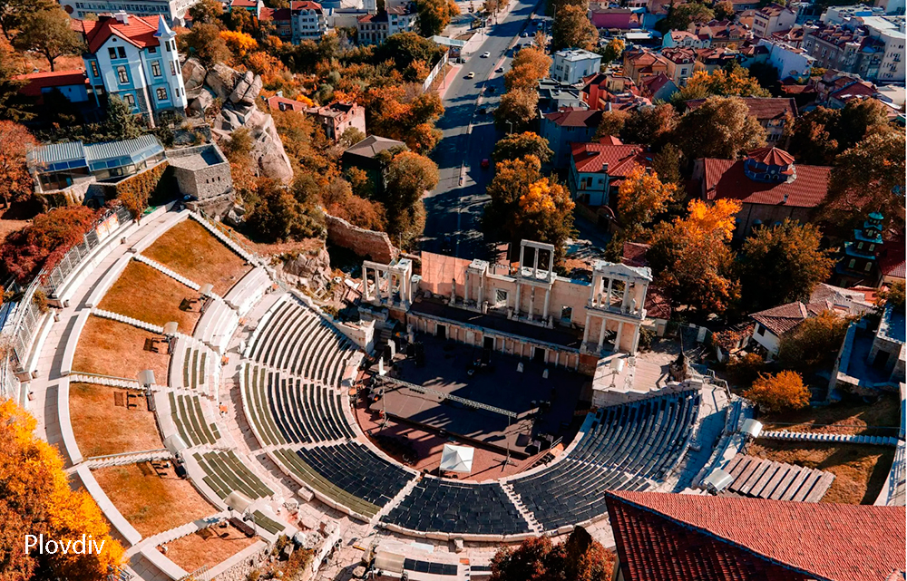 Desayuno. Traslado 2h a la bohemia ciudad de Plovdiv, Capital Europea de la Cultura 2019, entre las más antiguas del mundo. Rica en legados tracios, persas, griegos, macedonios, romanos, bizantinos y otomanos. City tour panorámico 4h, destacan: el casco histórico, con fachadas profusamente decoradas; la enorme Mezquita Djumaya, la Iglesia de San Constantino y Santa Helena, las ruinas del Estadio y más. Visita al Museo Etnográfico y su precioso patio, y el Teatro Romano del s. II D.C. Libre para disfrutar la ciudad a su ritmo. Grand Hotel Plovdiv 4**** o similar, céntrico.