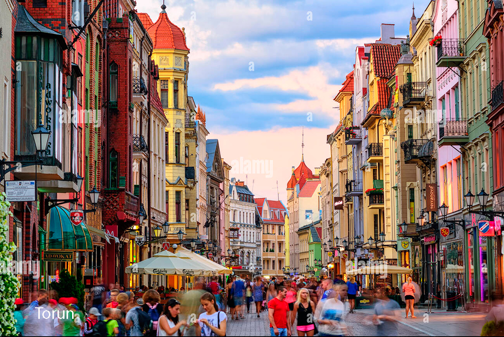 Desayuno. Traslado 2h al sur -ahora a contracorriente del Vistula- hasta Torun, Patrimonio Mundial por su rica arquitectura gótica. Cuna del ilustre astrónomo Copérnico. También famosa por sus galletas de jengibre. City tour del casco histórico medieval con la Plaza del Mercado Viejo, epicentro de la ciudad, con el antiguo Ayuntamiento del s. XIII y famosas esculturas de Copérnico, el perro Filus y el Burro; las ruinas del Castillo de la Orden Teutónica y más. Visita a la Casa de Copérnico, un museo interactivo del astrónomo con colecciones de libros y objetos cotidianos. Hotel ETERS 4**** o similar en el centro histórico. Libre para descansar y disfrutar de este acogedor casco histórico, con muchos restaurantes, cafés, tabernas y más.
