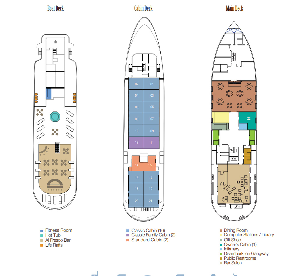 Desayuno, almuerzo y cena. Desembarque en la peculiar playa Punta Cormorán en el lado norte de la Isla Floreana, una de las playas más bellas de Galápagos por el color verde brillante de su arena rica en cristales de olivino. Caminata a una laguna de agua salobre donde suelen observarse colonias de flamencos. Continuación a una playa de arena blanca en el otro extremo de la isla, sitio de anidación de tortugas marinas. Tiempo libre en el Islote Champion para hacer snorkel, dar un paseo en panga o en bote con fondo de vidrio. Tarde, desembarque en Bahía del Correo para visitar el histórico barril de Post Office, usado por dos siglos como único correo informal de marineros, balleneros y piratas. El barco HMS Beagle usado por Darwin para circunnavegar el planeta (1832-1836) ancló acá para realizar los estudios base que luego sustentaron sus teorías sobre la evolución de las especies. Quienes gusten, tiempo para hacer snorkel en la playa.