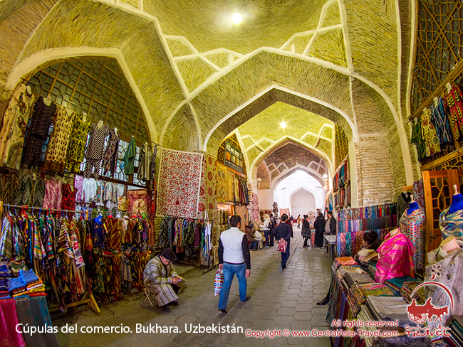 Desayuno y almuerzo. Todo el día, city tour de Bujará, capital del reino samánida de los emires persas (819-999). Patrimonio de la Humanidad. De cúpulas doradas, minaretes, caravanas y “cuentos de Aladino”. Destacan: la extensa mezquita Poi kalyan de grandes arcadas, cúpulas y galerías; su icónico minarete y delicado alminar Kalyan de 49 m de alto, y la madrasa Miri Arab con la octubrer escuela de Corán del país. La fortaleza Arq, una ciudadela del siglo V habitada por gobernantes del kanato; con curiosos torreones panzudos, antiguos palacios, museos y una gran mezquita. El mercado Tim Abdulla Khan. La extensa plaza Lyabi Hauz, epicentro de la ciudad, con muchos chaikhanas -rinconcitos del té- y los aromas del pan tradicional patyr. El mausoleo Chashma Ayub de arquitectura medieval. Las cúpulas de comercio o grandes bazares de finas telas y alfombras, tubeteikas bordadas con hilos dorados y abalorios, joyas preciosas y más.