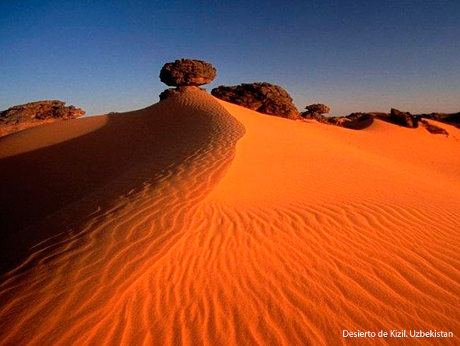 Desayuno y almuerzo. Traslado en bus 6h (o bien 3h en tren de alta velocidad Afrosiab si ya inauguraron este nuevo tramo) a través de la estepa del extenso desierto de Kizil-Kum, con pequeñas aldeas de pastores y el río Amu Daria hasta Bukhara o Bujará, la ciudad oasis de la Ruta de la Seda. Hotel Wyndham Bukhara 4**** o similar, céntrico. Libre para descansar.