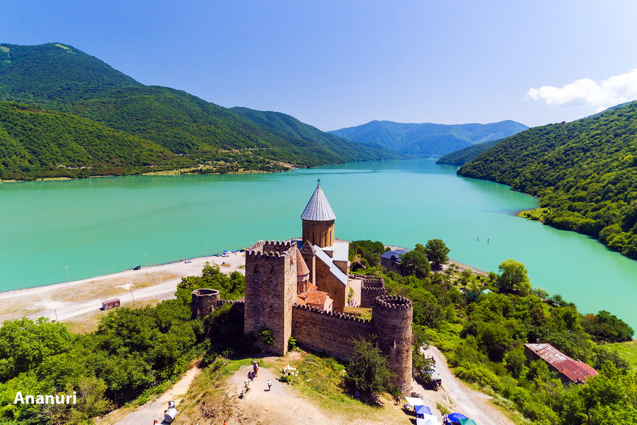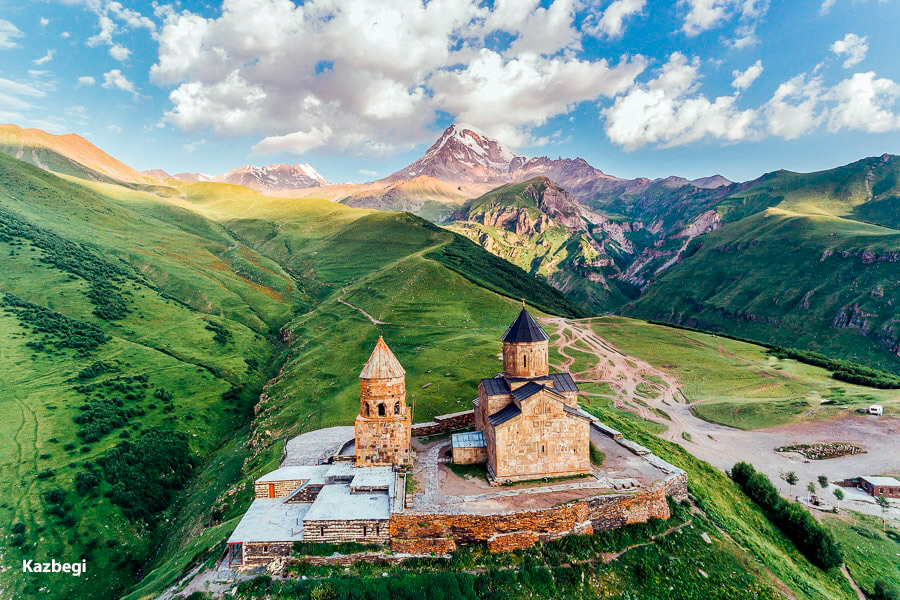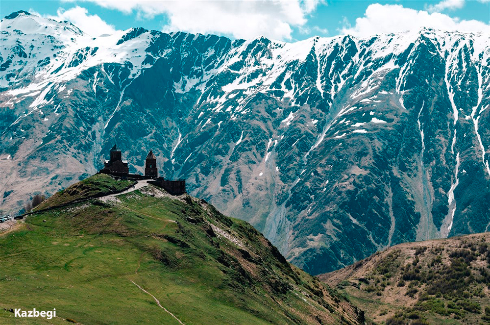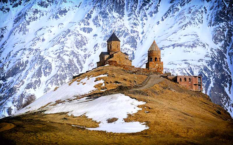 Desayuno y almuerzo. Traslado 1h a las Montañas del Cáucaso, la región más pintoresca del país. Visita al castillo de Ananuri, un escénico complejo medieval sobre un lago esmeralda, otrora fortaleza y residencia de duques. Continuación 2h a Kazbegi, un pueblo en la Cordillera del Alto Cáucaso, con bellas panorámicas de la icónica iglesia de Gergeti con el Monte Kazbeg de fondo, el valle de Truso, el macizo de Chaucha y más. Regreso a Tbilisi.