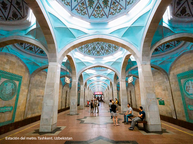 Desayuno. Traslado al aeropuerto. Vuelo a Tashkent, entre las ciudades más ricas de Asia central, con muchos museos y una mezcla de arquitecturas moderna, islámica y soviética. City tour panorámico, destacan: las elegantes estaciones de Metro de Tashkent, el exterior del Teatro Navoi y la plaza Amir Temur -corazón de la ciudad. Hotel CourtYard By Marriott 4**** o similar a 10 minutos en taxi del centro.