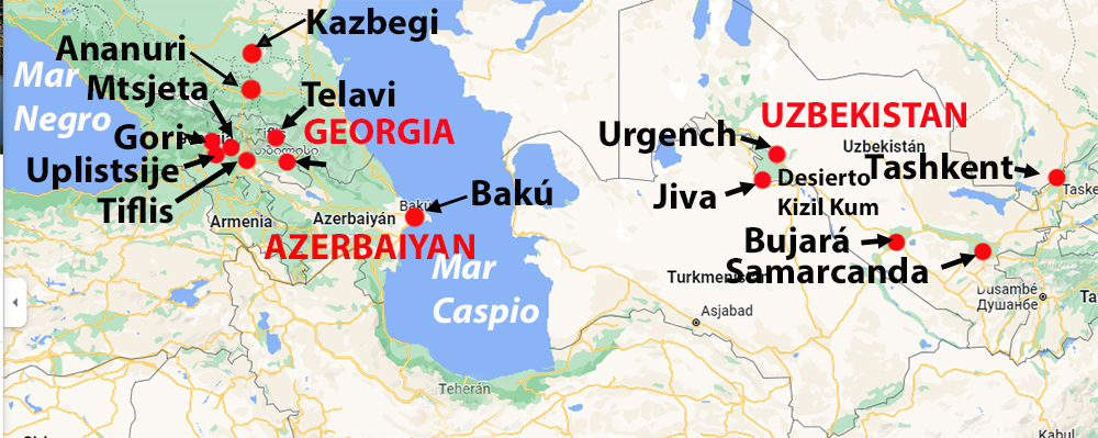 Una expedición a las más fascinantes ciudades de la Antigua Ruta de la Seda en Asia Central. Lo mejor de esta legendaria vía de intercambios de productos, ciencia, ideas y credos entre China y el Mediterráneo. Con ciudades de cuentos de Las Mil y Una Noches que inspiraron a Marco Polo, muchas Patrimonio Mundial. GEORGIA: de gente cálida, cuna del vino. Entre fantásticos paisajes de valles y picos nevados del Cáucaso, el Mar Negro y el Mar Caspio. Con Tiflis, centro histórico clave para las caravanas persas; los viñedos y bodegas de vinos de Kajetia; las bellas vistas de Kazbegi en la Cordillera del Alto Cáucaso; Mtsjeta, ciudad de encuentro de rutas comerciales; la casa natal de Stalin en Gori y más.