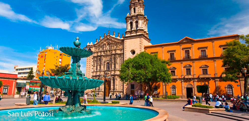 Desayuno. Traslado 2h hacia el norte para visitar un taller artesanal de rebozos de seda (prendas textiles artesanales) en Santa María del Río, el Pueblo Mágico cuna del reboso mexicano; famosos por su calidad excepcional. Continuación 1:30h hasta San Luis Potosí, con paisajes de desiertos, exuberantes valles y bosques, cascadas y ríos. Un centro histórico bien conservado y una gastronomía rica en sabores y tradiciones. Sugerencia: almuerzo de gastronomía potosina en Rest Cielo Tinto (no incluido, usted elige el plato de su preferencia y paga en el sitio). City tour del centro histórico con hermosos jardines y su imponente Catedral Metropolitana; el emblemático Teatro de la Paz, de excepcional acústica; la Plaza de San Francisco y el retablo en piedra de los siete arcángeles del Templo del Carmen. Hotel City Centro by Marriott 4**** o similar en el centro histórico.